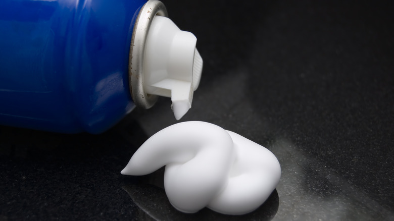 Since shaving cream is basically soap, it is ideal for removing a variety of other stains around the house. For example, you can use shaving cream to lift tough stains from carpeting; simply apply some to the stain and let it sit for 30 minutes, and wipe it away, per CNET. In addition, shaving cream is also good for removing coffee, ketchup, and tomato sauce stains from fabric; just squirt some on the stain and rub it in before putting it in the washing machine (via Reader's Digest). Shaving cream can also remove makeup from collars, which is why Apartment Therapy recommends carrying a travel-size bottle of it in your purse. Apparently, rubbing some on the makeup stain and then wiping the cream away with a cloth is enough to lift the stain from a collar.