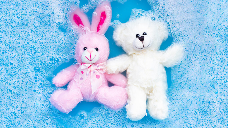 Thankfully, the dangers of dirty teddy bears can easily be avoided with regular cleaning. The Spruce recommends washing stuffed animals at least once a month — ideally during nap time or when a child is away at daycare to minimize the risk of them being upset by its absence. If, however, the child has been ill or the stuffed animal has been involved in a particularly messy play session, it's never a bad idea to add an extra cleaning to the schedule. If the toy is old or fragile, consider hand-washing it with a bit of detergent in the sink. A gentle cycle in the washing machine should be safe for most teddy bears, especially if they're placed in a pillowcase or mesh bag to reduce potential wear and tear.