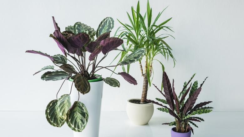 While suited for warmer climates, there are some areas of the United States that suit outdoor growing as well. If planting Calatheas outdoors, stick to USDA Zone 10b, which lists a minimum winter temperature between 35 degrees Fahrenheit to 40 degrees Fahrenheit (via Plant Hardiness). Basically, you don't want your prayer plant to freeze. Very hot and dry temperatures, however, will also rob the plant of much-needed moisture.