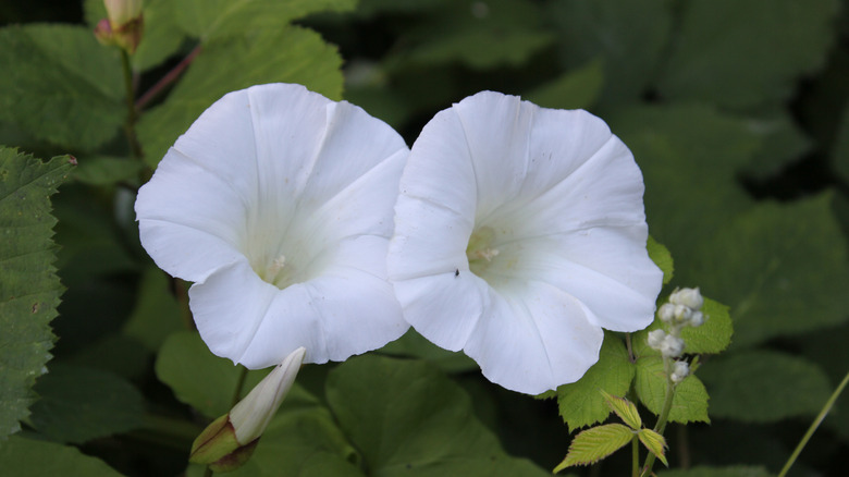 Moonflowers may be pretty easy to grow and will spread far and wide across your garden if allowed. However, this comes with a catch: If consumed at all, then the moonflower is seriously poisonous to humans and animals alike. H2ouse explains that from the roots to the leaves, flowers, seeds, and sap, the moonflower can be lethal. Fortunately, many animals will avoid eating moonflowers due to the scent that they release — think of it as being a warning scent. However, all creatures great and small will be affected by moonflower if they consume it so it's better not to grow it around pets.