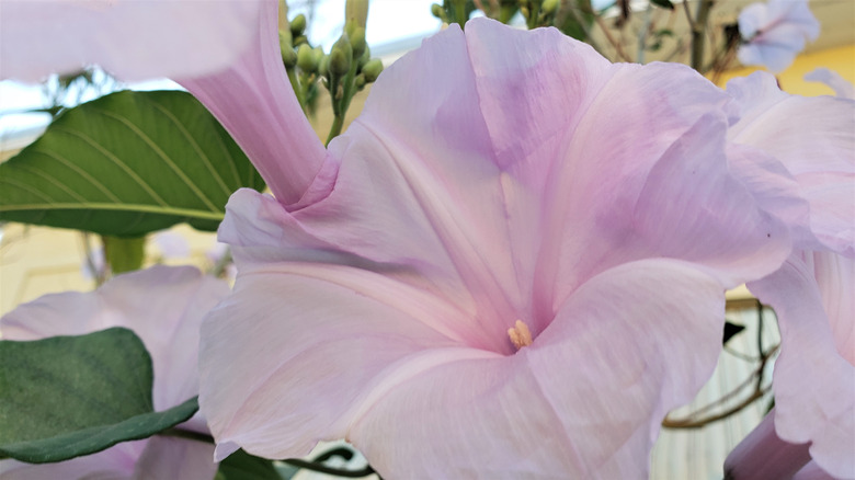 When grown in ideal conditions with the right temperature and humidity, Better Homes & Gardens writes that the vines on moonflowers can grow up to 20 feet long. Additionally, as a cousin of the morning glory, there's one key fact to remember when you're growing moonflowers: They're highly toxic to both pets and humans. That isn't to say you can't keep them though. To that end, before you take the deep dive into investing time, energy, and hope, here's everything you should know before planting moonflowers.