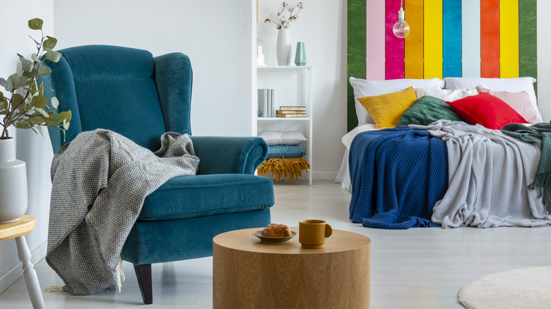 While Sleep.com says a cozy bedroom comes from the right lighting and a feeling of safety, comfort is essential as well. Comfort is about more than just the right sheets, pillows, and blankets, too. You may find yours in a particular piece of art, by having plants in your room, or by looking at certain paint colors. Blues and greens are calming and creative-inspiring colors, but there are other paint colors that evoke relaxation and happiness, comfort and safety, and peacefulness, too. Go with your favorite colors, or pick something completely different — each of these bedrooms is sure to inspire you when you redo your own!