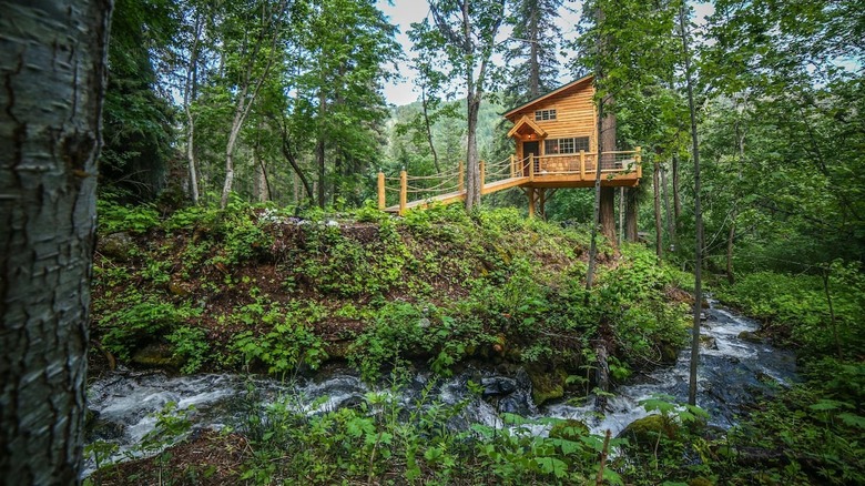 This adorable one-bedroom treehouse in Peshastin, Washington has all of the amenities and charm that you want and was actually made with salvaged timber found on the 150-acre property. While that's awesome enough, it's the fact that it's perched above a fairytale-like stream named Hansel Creek that might win you over.