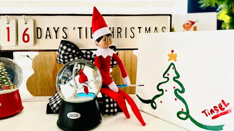 If your Elf on the Shelf is crafty or artistic, display them along with their creative works. Tinsel ought to be in an art gallery!
