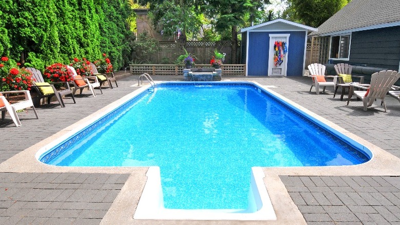 Even pools with a basic rectangular shape can look beautiful. If you want a pool perfect for swimming laps or playing with the kids, this is a great choice.