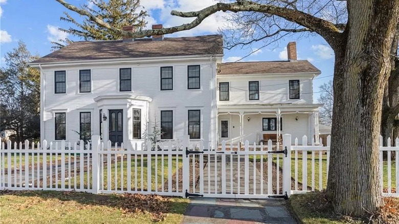 The Chaffee Homestead was built in 1812, according to the former listing on Circa Old Houses. It looks as though it's straight from a movie set, with white siding, minimal black trim, a quaint porch, brick chimneys, a stony brick pathway, and a white picket fence. This picturesque house is equal parts colonial revival and contemporary chic.