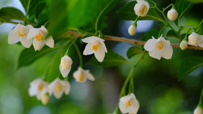 Native to the Southern Appalachian Mountains, the Carolina silverbell tree blossoms with cute, snowy white flowers that hang down from its branches like little bells (per the Missouri Botanical Garden). In nature, these trees are usually found among mountains, hills, or slopes.