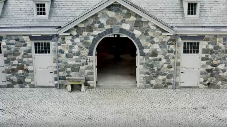 The gorgeous gray stable block pictured above is where Stewarts' three horses, two additional Fresianians, one fell pony, and five donkeys call home, as per The Martha Stewart Blog. The stables are nestled at the end of Boxwood Allee, a long stretch of road on the estate (via her blog). The gray cobblestone building perfectly complements the main residences' tone and color. This structure is a classic continuation of the neutral color palette seen throughout the buildings. The stables even have a farm office inside where Stewart takes time to share some of her most memorable photos.