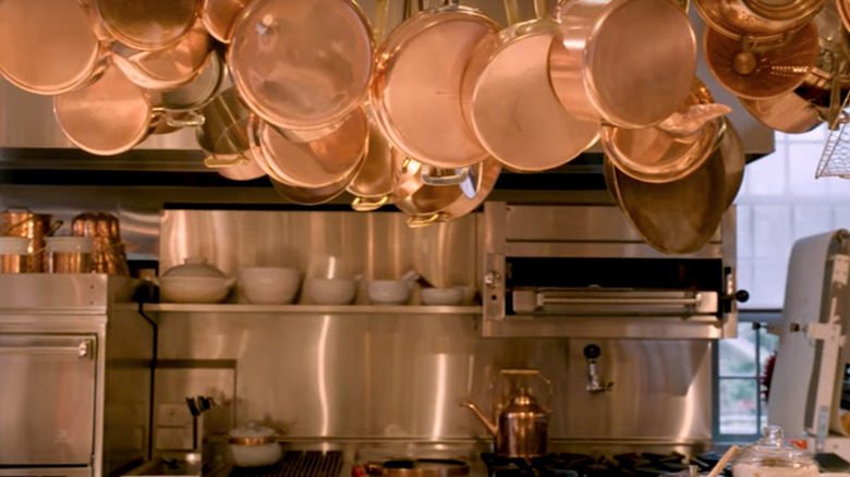 The copper pots hang abundantly above your head as you stand in this epic kitchen. According to Martha Stewart, this is a throwback to her first home kitchen in Turkey Hill, which featured the same hanging pots and pans. The celebrity chef undoubtedly has the ideal space to create the perfect culinary work of art. This beautifully crafted home kitchen has seen many recipes from Stewart over the years. In the home tour, she shared details about the impressive cappuccino maker and how photographs of her recipes have been taken in this very spot. The storage is open and airy, offering easy access to the items you need most when cooking a classic favorite or inventing a new dish.