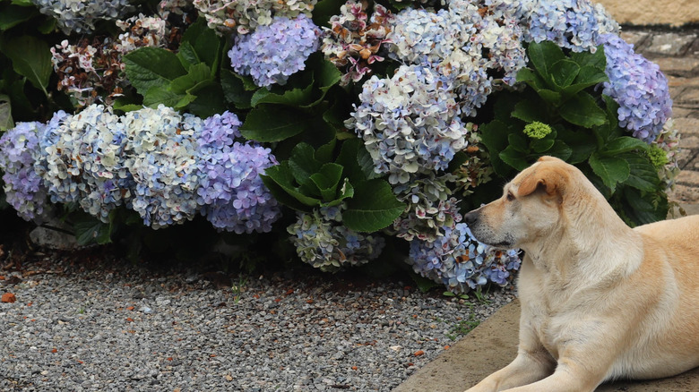 Hydrangeas can be more toxic to animals than to humans. While it's best to keep the little ones away from ingesting any sort of harmful plant, animals should especially be watched over when they're near hydrangeas. Dogs, cats, and horses are the most prone to being affected if they ingest hydrangeas, according to Plant Addict. All parts of hydrangeas are poisonous because they contain cyanogenic glycoside, which causes serious stomach issues. Some clinical signs to look for in your pets include diarrhea, vomiting, loss of appetite, nausea, and fatigue.