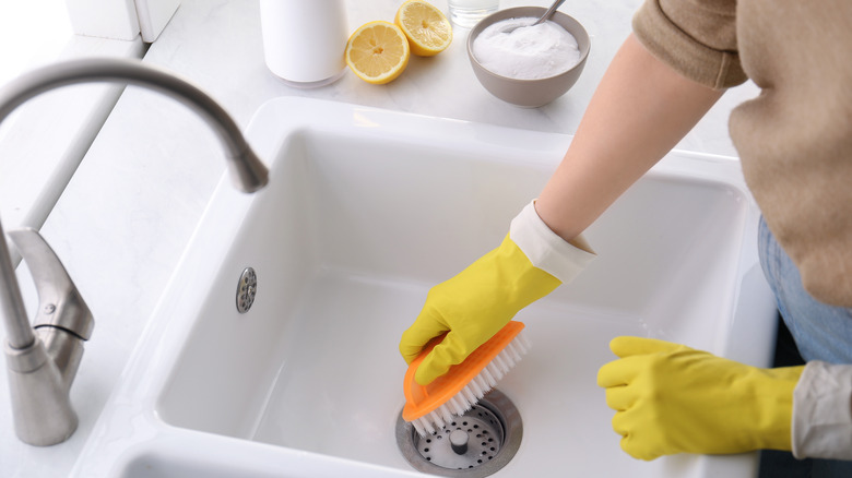 Cleaning your garbage disposal doesn't have to be a hassle. You don't have to go out and buy a commercial garbage disposal cleaner, and in fact, the chemicals in those cleaners may damage your pipes. Instead, The Spruce explained some easy ways to clean your garbage disposal using items you probably already own. The first part of your weekly garbage disposal cleaning routine should be to clean the underside of the black rubber flaps in your sink's drain using a sponge and soap. This is a place where food gunk collects, contributing to odors. Then scrub the drain opening until the sponge doesn't pull out any more gunk. Make sure to turn your garbage disposal off before beginning this cleaning process and rinse your sponge thoroughly after scrubbing.