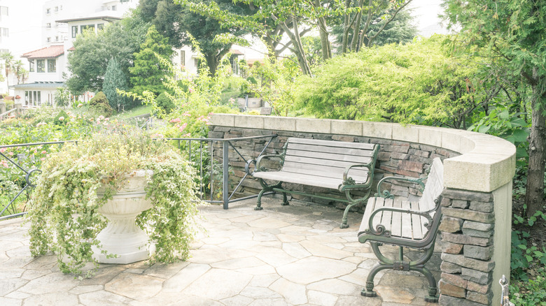 Zen garden pavement spirals are a popular addition to many backyards. The textured stones paired with the calm environment and variety of plants are ideal for relaxing evenings. With this configuration, use your creativity to come up with a pleasant design that fits your zen aesthetic.
