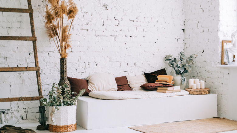 First, you need to create your brick wall. Turnbull Masonry explains that you may already have brick hidden by your existing walls. The bad news is the only way to know that is to remove the plaster, and what's there might not be what you were hoping for. If it's not or you don't want to take that chance, there are other options. According to Brick It, you can install thin and thick-set collections in various colors right into metal grids that you mount on your walls. And Gypsum Joy notes design companies have developed ways to simulate the effect with wallpapers and brick veneers. But there are things to consider before choosing any of these options.