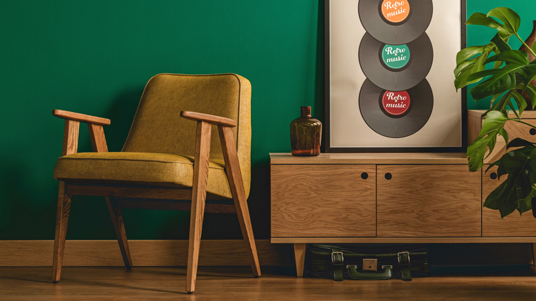 Match your mid century modern furniture with a flatter mustard color, and contrast with a rich and vibrant kelly green for a funky design approach.