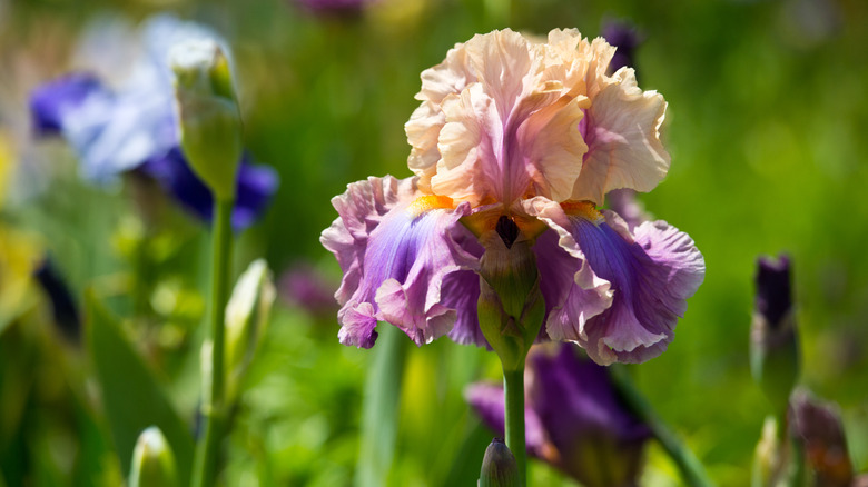 Bearded irises make for beautiful garden plants because of their vast array of colors, stand-out petals, and impressive height. These flowers are perfect for any ornamental garden and make great companions for many other flowering garden plants. They coexist well with plants that require similar growing conditions, such as full sun. The English Iris Company gives some examples of similar plants that work well with bearded irises, such as poppies, peonies, and daisies.