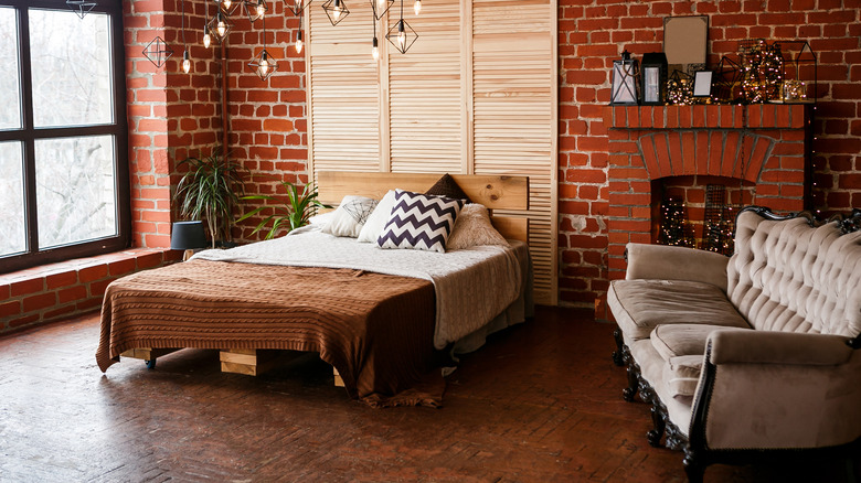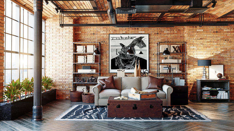 Brick and stone walls are a staple of industrial lofts and décor styles. If you have an exposed brick wall, highlight it and feature other modern furniture. Get brick peel and stick wallpaper to create a temporary and cost-effective solution if you don't.