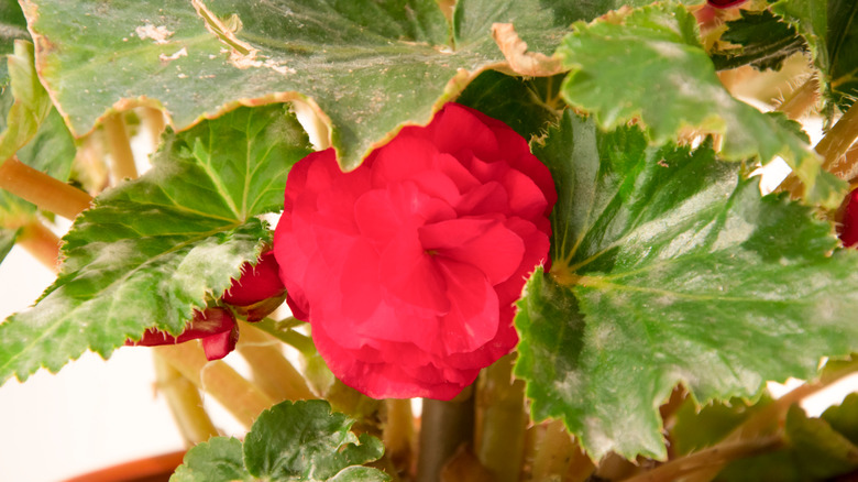 With close to 2,000 species within the begonia genus (family Begoniaceae) and 10,000 hybrid species, there are plenty of stunning options to make your garden designs unique. While begonias are capable of being perennial in more tropical regions such as South Florida, most are simply grown as annuals because the maximum lifespan of a begonia tends to be two to three years. The flowers of these vibrant plants range from yellow to white to red. In fact, the only color you won't find them in is blue, as per The American Begonia Society. Whether the flowers are displayed as single stems or clusters of blooms depends largely on the species. Leaves also differ in size (from 2.5 cm to 30 cm) and texture. Begonias can even be evergreen or deciduous, meaning some varieties don't lose their leaves in cold weather while others lose their leaves annually. Plants range from 6 to 12 inches, and the shrub varieties can grow up to 5 feet tall.