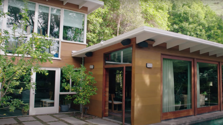 Originally constructed by architect Carl Maston, Dakota Johnson's home is full of charm and character. According to Architectural Digest, the treehouse is nestled into a quiet cul-de-sac in Los Angeles and surrounded by a variety of lush green trees. There are three large front doors built into one wall of the living area, making it easy to welcome guests into the space. The back wall is made of floor-to-ceiling glass doors, which lead out to a pool and spacious outdoor area and add a lot of light to the home.