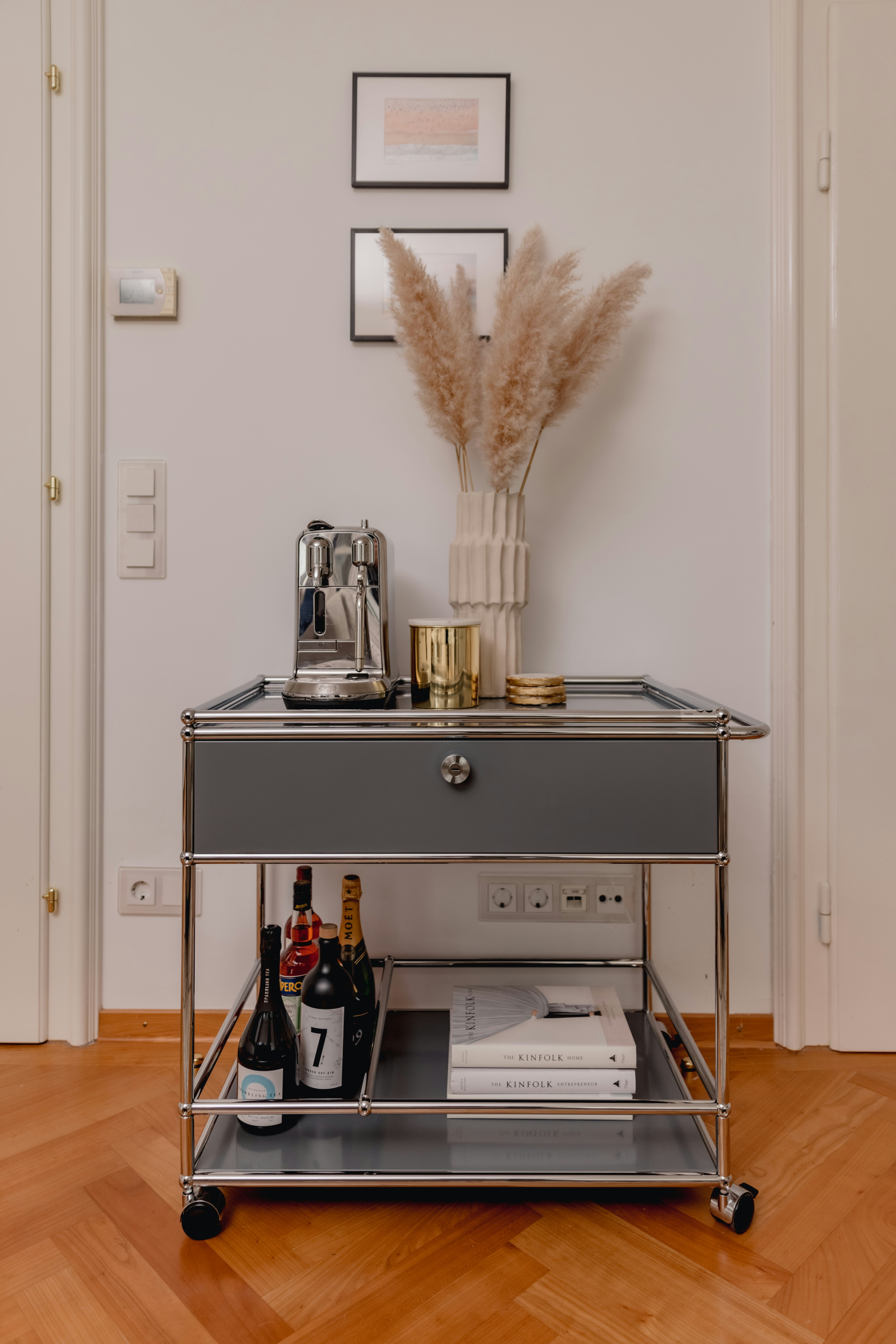 Happy hour anyone? Bring the 1960s to life in your home by adding a bar cart to the living room, dining area, or kitchen. This fun element will surely elevate the mid-century modern look in any room. To help your bar cart reach its full potential, organize the shelves with essentials like coasters, canisters, napkins, utensils, and dessert plates. Add a fresh coat of gold paint or add seasonal decorations for stylish sparkle.