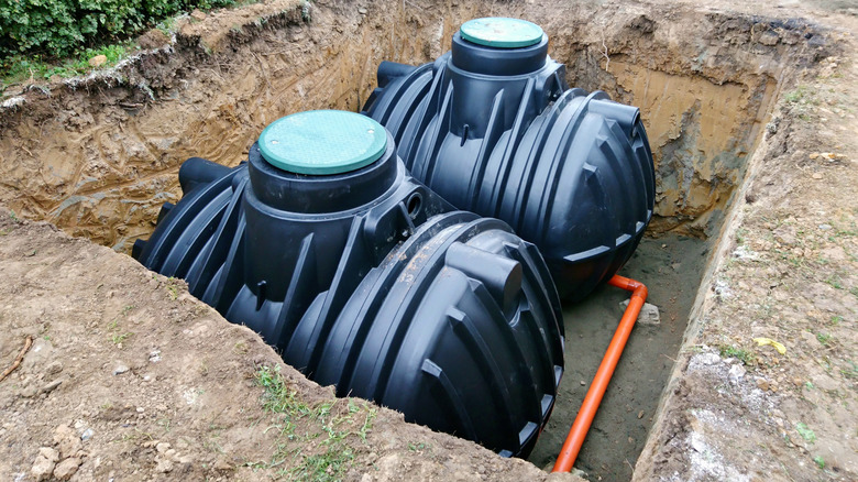 Typical septic systems are underground wastewater treatment plants installed where centralized sewer systems aren't available. The systems transport waste from your household plumbing to a tank and remove solids. They then go to a drain field where the treated water is put back into the environment. The size of a septic system depends on the number of bedrooms in a home. For example, an average three-bedroom home has a septic system costing $3,918 (via HomeGuide). As with sewer hookups, this price varies.
