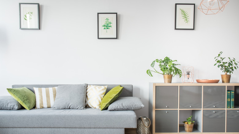 Green has become a fan favorite in the last year, so if you're not on board with green in the house, you can start small. Placing small house plants such as succulents or big leaf fig plants on side tables or on top of dressers can be a good start. You can then make your into buying accent pillows in any shade of green, if you're going for a '90s look, then lime green is the way to go.