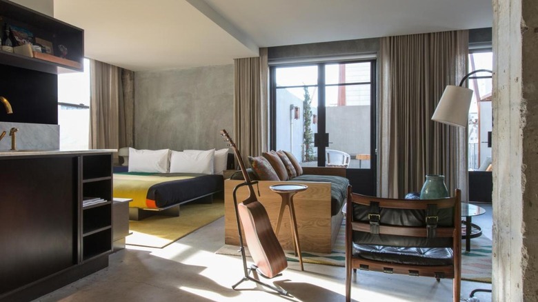 Between the industrial style and the bustling rooftop, the Ace Hotel Downtown Los Angeles is one of the best accommodation options in the area. The rooms transport you to New York City with rustic accents and hip accessories like classic record players and vintage guitars. Each room features a well-stocked mini bar that puts others to shame, ensuring that you have everything you need from the comfort of your room.