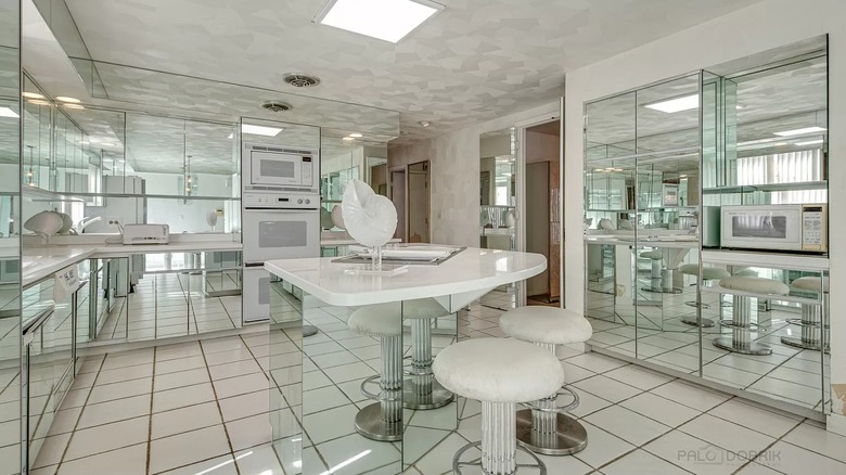 Those who live in glass houses — or mirrored ones — should not throw stones. This mirror-adhered home might be a mistake or a masterpiece, but that's not for us to judge since it just sold for $699,000. Located in Oak Brook, a suburb less than 20 miles from downtown Chicago, the four-bedroom and five-bathroom residence was lovingly decorated over a ten-year period beginning in the 1980s, per Realtor.com, and having had only one owner, hasn't changed much since.