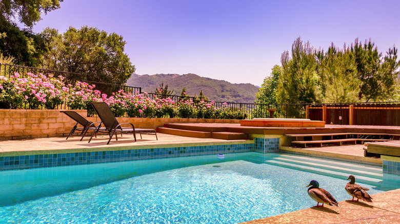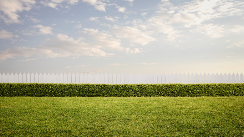 Take the traditional route and install a white picket fence with hedges boarding alongside it. It's simple, beautiful, and goes along with most backyard designs.