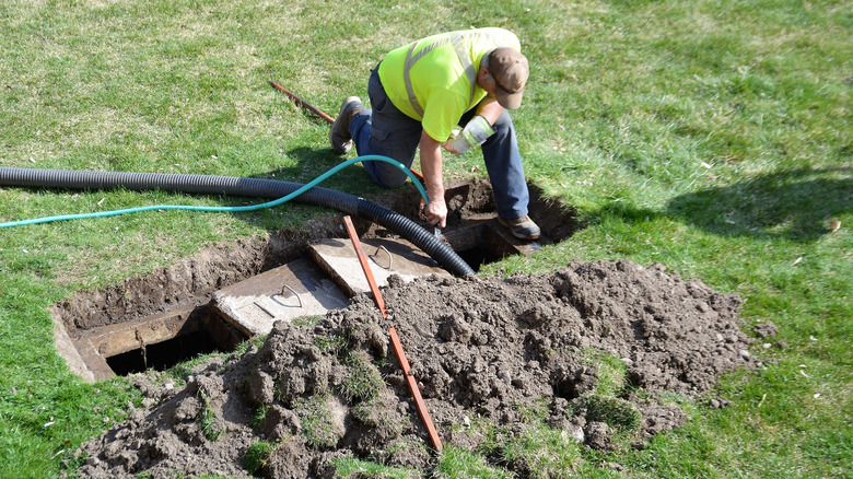 One of the first indications that a septic tank is beginning to fail lies in the smell you experience in your home (via Metro Rod). A failing system may contain more solid waste than is normal for the tank, which can lead to an overflow of liquid wastewater or a backup that brings standing water into connected plumbing in the home. This results in both a visual and olfactory response that is easily noticed by those in the home.