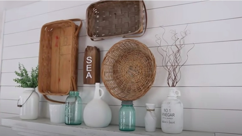 Some say the overall farmhouse trend is on its way out, but the modern farmhouse design doesn't seem to be dissipating too quickly. If this is your style, combine wicker baskets, and mason jars with sea glass and decorative bamboo or Kulu sticks to bring a bit of the beach to your living room.