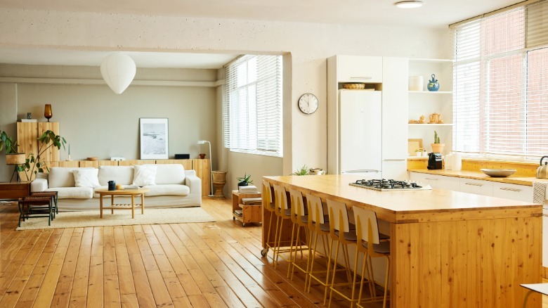 Beige tiles are, unfortunately, reflective of the "sad beige" trend. This refers to the dated trend of covering everything in the home in various beige, neutral tones. However, as the beige-drenched aesthetic has taken a back seat in modern interiors, Haack has moved onto more timeless wood floors. Although wood is still neutral, its rich tones and visual variation make it a more dynamic choice. Plus, wood floors have been in style since the dawn of interior design. If hardwood floors are out of your price range, you can find luxury vinyl flooring with the look of real wood.