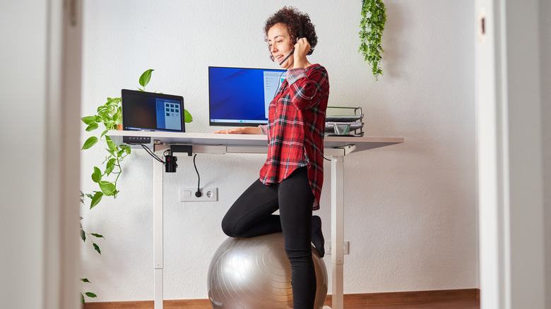 In the last couple of years, standing desks have become quite popular in workspaces and home offices. While brought on by the pandemic for many, standing desks had already caught the eye of a few companies and workers before the COVID-19 outbreak. The need to be more active during the work day, paired with the flexibility of standing while working, makes standing desks as practical as they sound. They've also been linked to a number of health benefits, like lowering the risk of heart disease, obesity, and back and neck pain, according to WebMD. Undeniably, anyone, no matter their age, level of activity, or anything else, can face health issues if they're sitting down, or sedentary, for too long.
