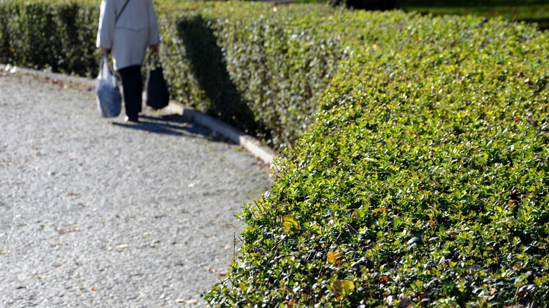 Privet, a plant species commonly used to create hedges, is sophisticated and a considerably cheap choice of fencing. This is also the perfect option if a wall is impractical or not allowed. These plants can reach heights of up to 15 feet and widths of up to 4 to 8 feet. Privet doesn't require a lot of maintenance in terms of fertilizer and regular watering. However, you will need to prune it after its flowers appear. It is also noteworthy that privet is toxic and doesn't look great all year round as it is not evergreen (via Love to Know).