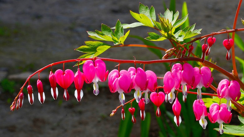 The Asian bleeding heart (Lamprocapnos spectabilis or Dicentra spectabilis) is a Valentine's favorite that is native to Asia in certain areas of China, Siberia, and Japan. While popular for its dangling pink, heart-shaped flowers, its petals can also be red and white. Hardy in zones 3 to 9, this plant does fine in cool weather but requires sufficient preparation to keep its flowers during the winter. According to Gardener's Path, this looks like pruning, cleaning out plant debris, keeping the roots moisturized, and adding mulch. It prefers soil that is moist and rich in humus and organic matter.
