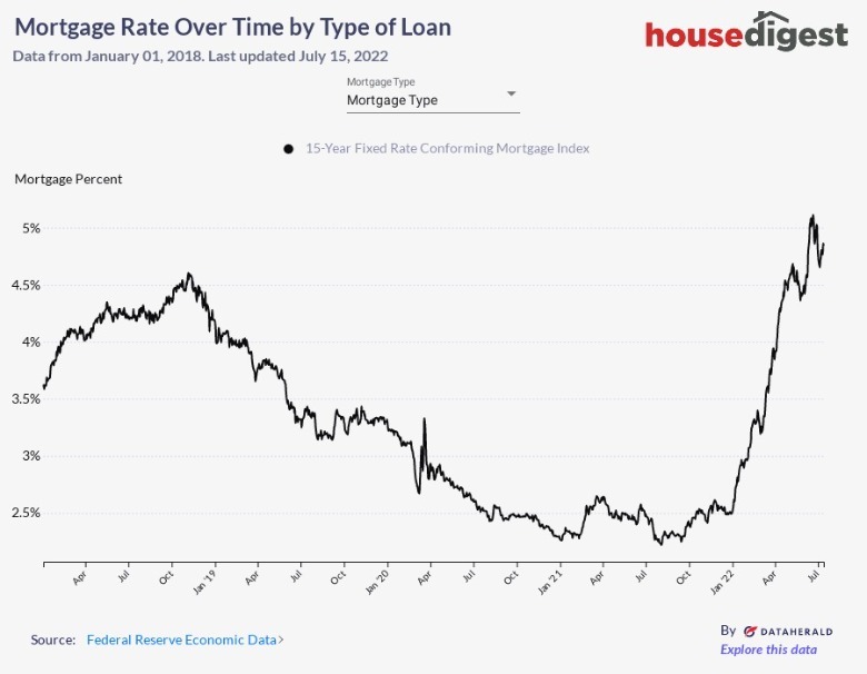 With inflation on the rise, people can expect higher costs in such products as food, gas, and housing, according to The New York Times. With regards to the latter, this means rising mortgage rates. For 15-year mortgage rates, it seems they're hovering around 5%, which is a far cry from the lower rates of just a few years ago.