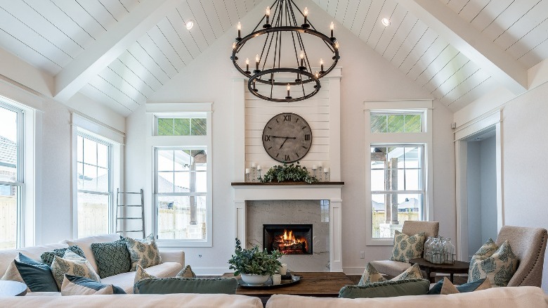 Finally, another focal point that can be integrated into your home seamlessly, providing you with a more subtle approach to grabbing attention: vaulted ceilings. According to House Beautiful, vaulted ceilings are basically an arch underneath a roof that leads upward from each wall to a central point. However, the arch is not a requirement, and vaulted ceilings can be triangular in shape. These ceiling types offer your home a dramatic design while filling in wasted space, such as an attic. Instead of the standard flat ceiling, you'll have an arched version that comes down to a lower point.