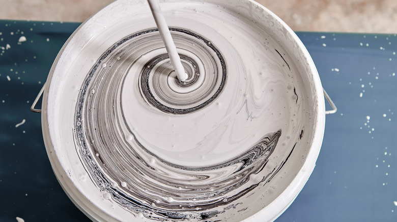 Hydrated lime can either come as a dry powder or as lime putty, which is paste-like and can be less messy. The ratio should be 1 part alum salt to 10 parts lime putty or hydrated lime powder to 40 parts water. You can also add 1 part of pigment if you're adding color. First, add the alum salt to a small amount of boiling water, enough to dissolve the salt. Once the mixture is cooled, carefully combine all ingredients, pouring and stirring slowly so as not to breathe in lime particles and dust. A face or dust mask should be used when mixing your own hydrated lime powder (via Earth Pigments).