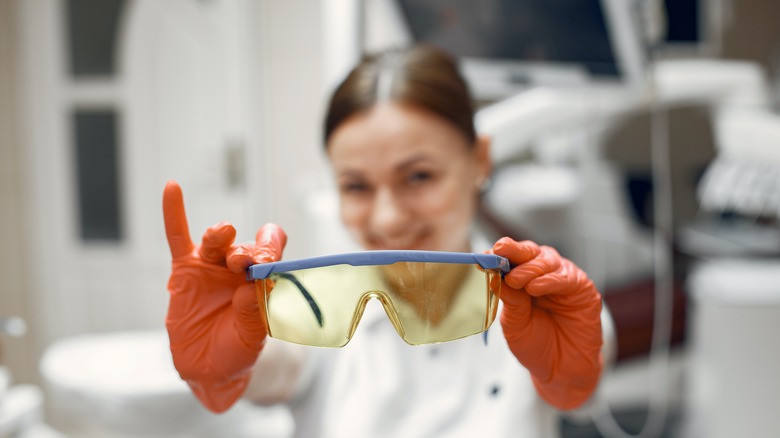 Therefore, gloves and goggles are recommended when using limewash paint. Goggles or glasses will keep any rogue splatter out of your eyes, and gloves will protect your skin where it's most likely to come into contact with the paint. Lime and limewash paint is caustic, and if it comes into contact with your skin, mouth, or eyes, it could cause burning and other skin irritation (via Children's Hospital of Philadelphia). More potent forms of lime can cause more severe injuries, and you should carefully read instructions and warnings on any product before use. However, if you come into contact with small amounts, you should wash the affected area thoroughly and immediately. If careful, limewash paint should not be hazardous.