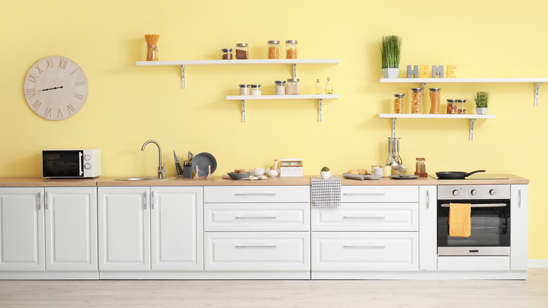 Adding vertical storage is all about taking advantage of wall space to provide both aesthetic value and a greater volume of storage and equipment holding capacity. Another storage idea is to use stackable drawers to create a vertical tower of pull-out storage, per Abbey Organizes. Alternatively, you can incorporate shelving or rack storage that attaches directly to the wall for a pleasing visual effect. It provides a shelving area away from your walking path and removes some of the clutter from desks, countertops, and other essential spaces for keeping elements of your art creation workflow. If you feel like taking a plunge, consider adding open shelving to the walls of your studio.