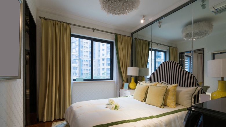 Using a mirror as a ceiling is possibly one of the most idiosyncratic ways you can use a mirror in your living room, bedroom, or dining room. They not only make your room brighter since they're closer to light fixtures, but they can make any room look taller.