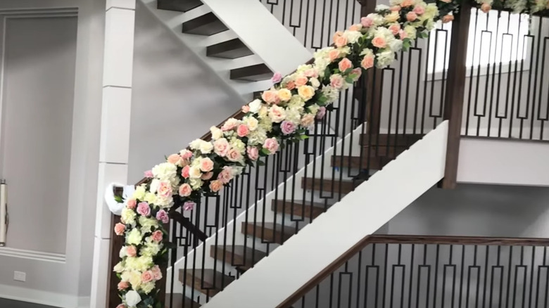 Garlands along the staircase will make your space look elegant and lively. It will also emphasize the architectural beauty of your staircase.