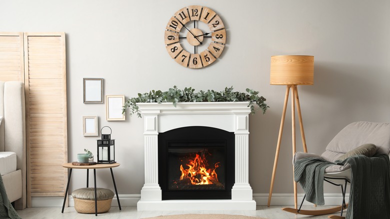 If you have an electric fireplace with the look of real flames, a floral garland can bring even more warmth to the space.