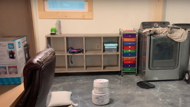 Before, this basement was practically ignored by the family. They used this corner to store extra furniture and other items, as seen on the empty shelving unit.
