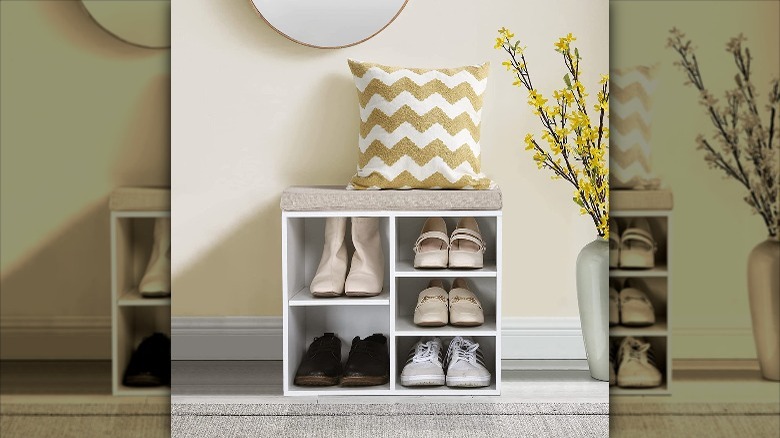 The seat cushion on top is included and sports a neutral gray that will complement just about any décor. It buckles in place to keep it from sliding around, and the cover on the cushion is removable for easy cleaning. It's a surprisingly sturdy piece for its size, holding up to 250 pounds total. While it doesn't hold dozens of pairs of footwear, it can be just enough to make your mudroom instantly feel more organized and help you face the day with a lift in your step.