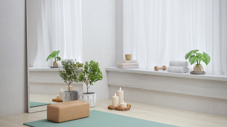 If you love yoga, but your home practice has been getting a little stale, it might be time to switch things up. No matter what your home looks like, you can turn any room into a yoga studio. All you need are some basic equipment and a bit of creativity. But if you're short on space, consider using a corner of your living room or bedroom — just make sure the area is quiet and free of distractions. As Yoga Journal explains, the site must have a sense of serenity and stillness.