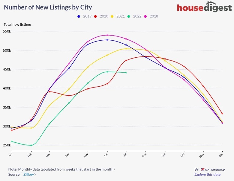 Data collected by Zillow shows in detail how the number of listings has dropped dramatically, especially when you look at the figures from June of 2018 to the same month in 2022. In 2018 there were nearly 540,000 properties ready to be snapped up by homebuyers as opposed to the 440,000 available in 2022. In fact, when you look at those numbers for those two years over the previous three months, it shows that there's been a near 100,000 listing difference spanning that time frame. But what is causing the number of real estate listings to go down?