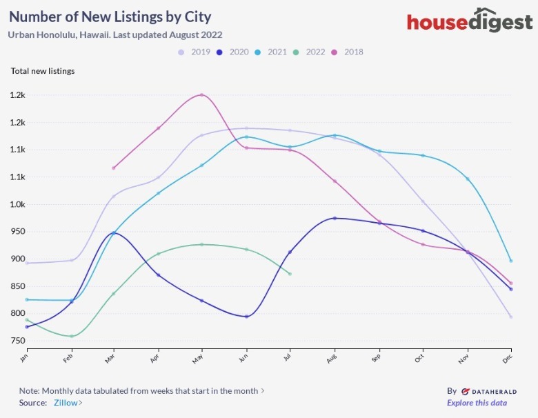 For starters, homes are typically only on the market for a mere 10 days before they're purchased, according to Dwell. Our data shows that back in 2018, there was a point where listings reached 1.2 thousand, and it hasn't been that high since. The geography of the island also makes it difficult to build more homes as the area is full of steep hills and shorelines. The fact that building materials are the most expensive in this state when compared to the rest of the country is also a factor that has slowed down new developments significantly since the 1960s.