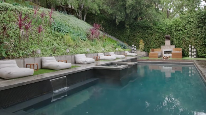 Chelsea Handler asserts there's nothing stuffy about her. "I'm from New Jersey. It's impossible to be stuffy if you're from there," she shared with Architectural Digest. Instead, she aimed to create a space that focused on entertaining. Her living room, which she calls the adult room, features comfortable and contemporary furniture centered around the glowing fireplace, a high-pile area rug, and shelves filled with gifts and collections. Adjacent, a large table made from reclaimed Venetian piers is flanked by chrome and thickly padded chairs. She's quick to mention that she knew she had to have the smart quilted sectional in her den as soon as she sat on it. The pieces are modern yet still exude comfort, something it seems Handler wasn't willing to allow L.A. glamour to supersede.
